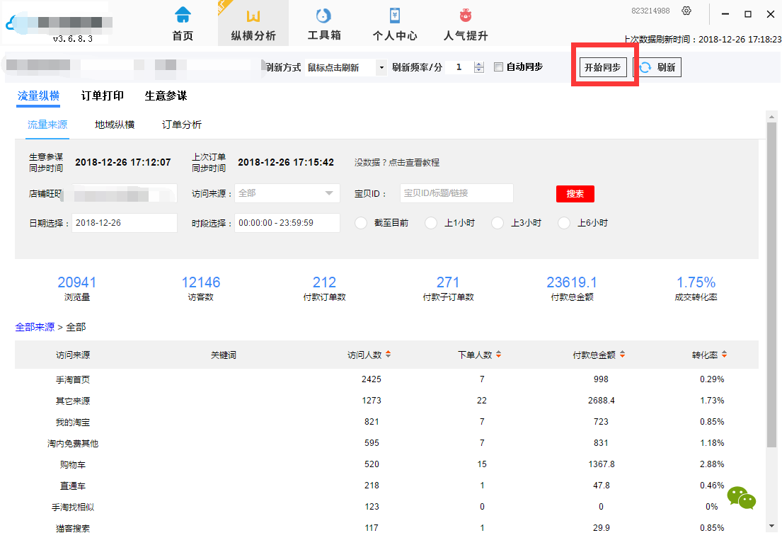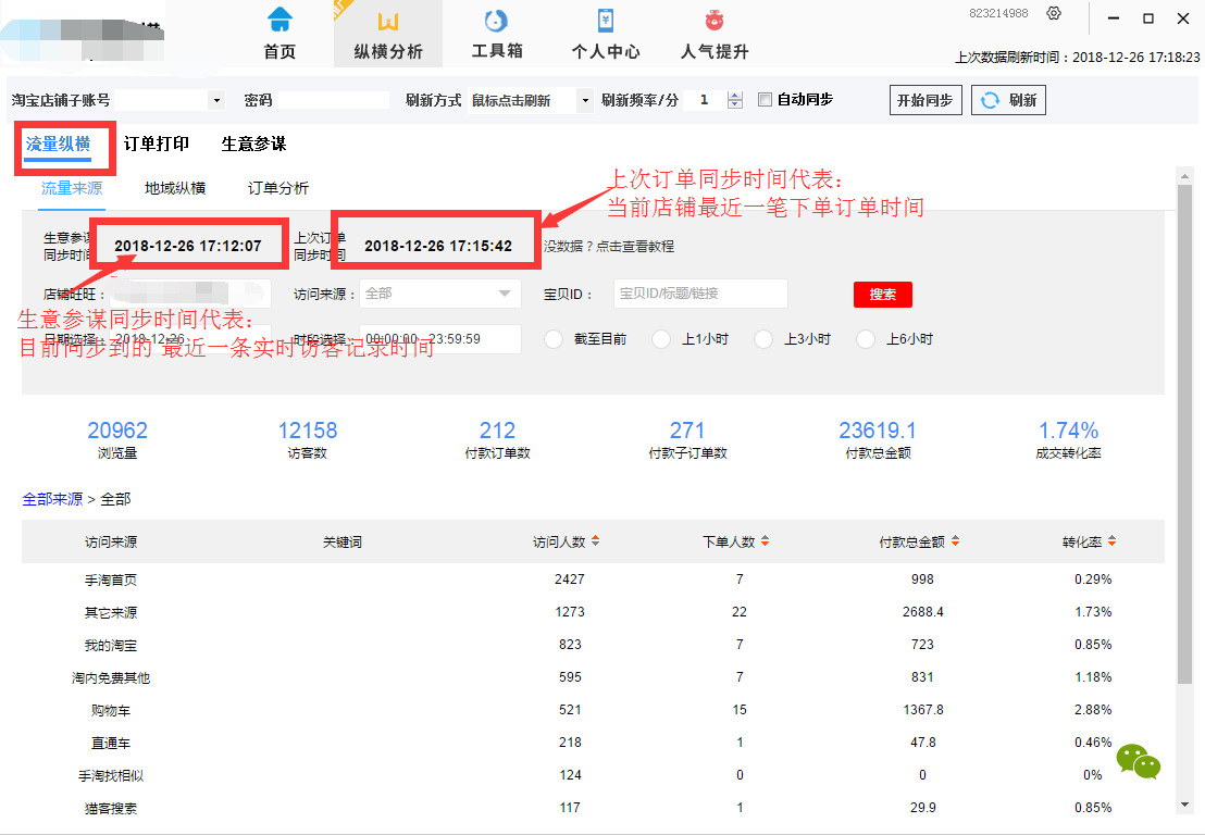 如果没数据,请检查: 生意参谋同步时间与上次订单同步时间 生意参谋同步时间:代表 生意参谋实时访客截止时间 上次订单同步时间:代表 当前店铺最近订单同步时间 |